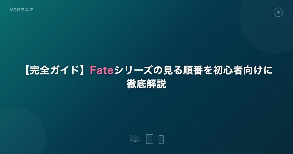Fateシリーズの見る順番を初心者向けにわかりやすく解説。UBW→Heaven’s Feel→Zeroの順がベスト。全作品の配信状況をU-NEXT・DMM TV等7サービスで徹底比較。無料で視聴する方法も紹介します。 -