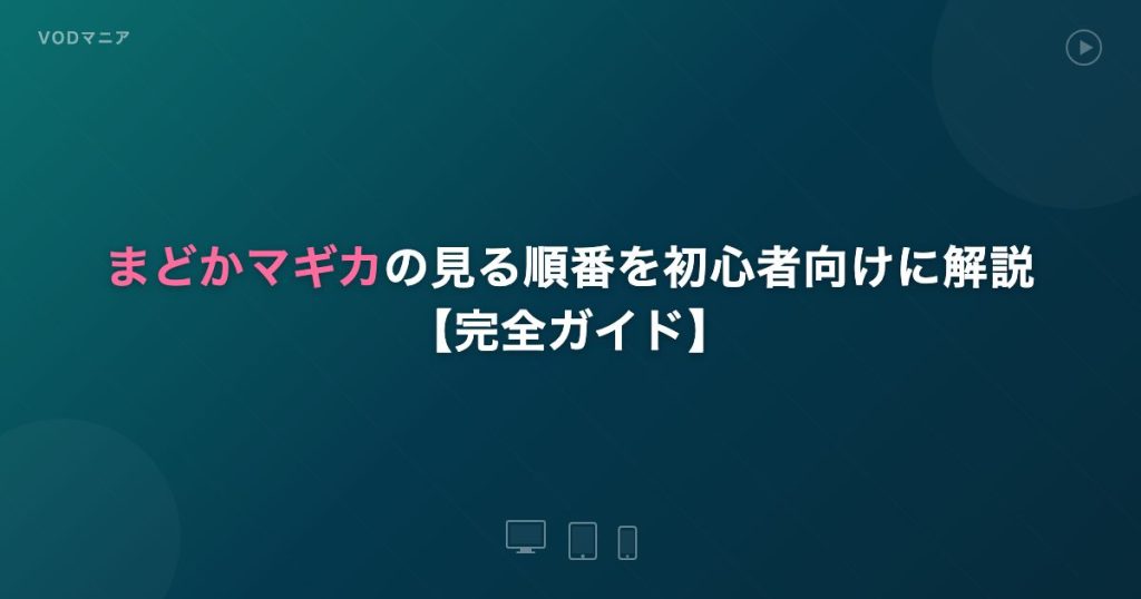 まどかマギカの見る順番を初心者向けに徹底解説。TV版→叛逆の物語の2ステップでOK。劇場版やマギアレコードの位置づけ、全VODの配信状況、無料視聴方法まで完全網羅。2026年8月公開のワルプルギスの廻天の情報も。 -
