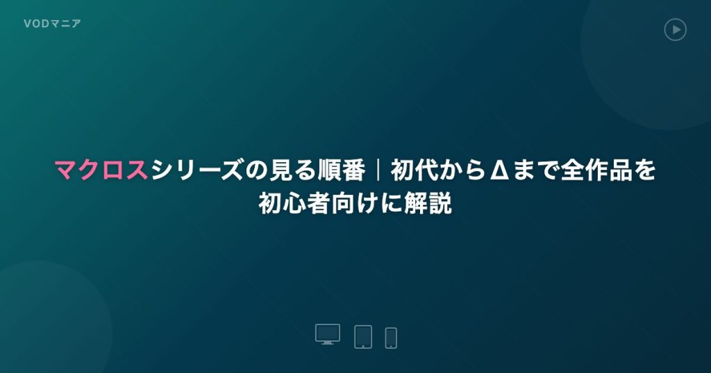 マクロスシリーズの見る順番を初心者向けに解説。超時空要塞マクロス→プラス→7→ゼロ→F→Δの推奨視聴順と劇場版の位置づけ。U-NEXTなら全シリーズ見放題で31日間無料。 -