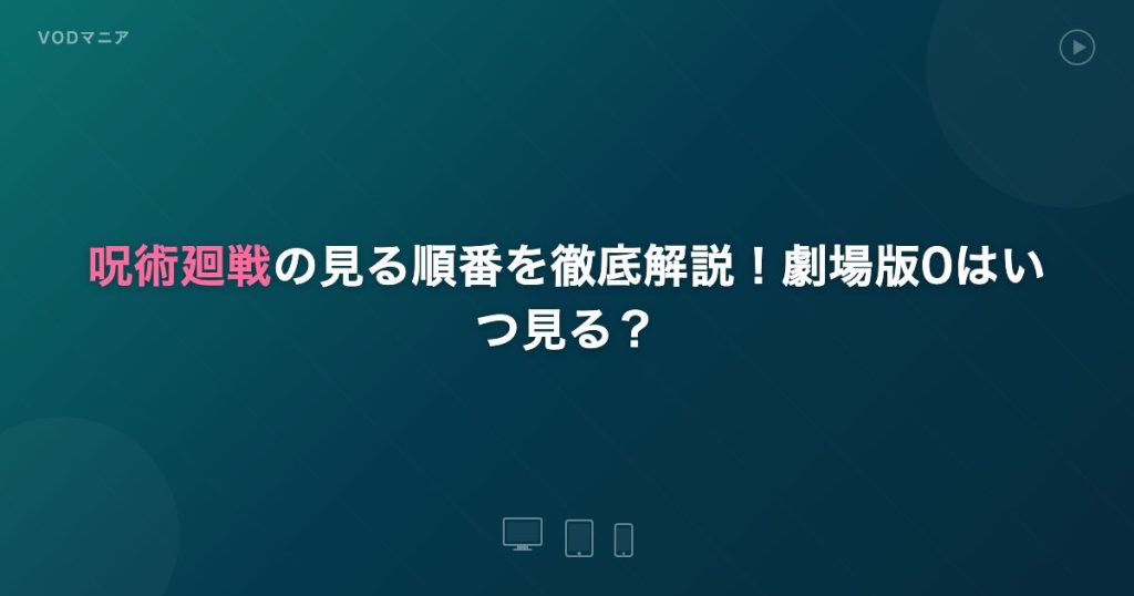 呪術廻戦の見る順番を初心者向けに解説。TV1期・劇場版0・2期の最適な視聴順、各シーズンのあらすじ、U-NEXTで全話無料視聴する方法を紹介します。 -
