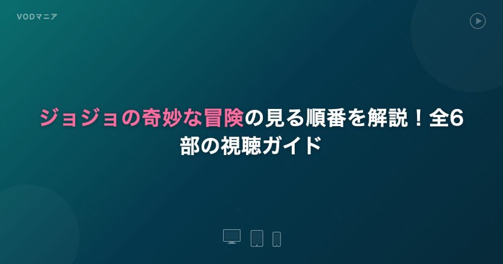 ジョジョの奇妙な冒険の見る順番を初心者向けに解説。第1部〜第6部の最適な視聴順、各部のあらすじと見どころ、U-NEXTで全話無料視聴する方法を紹介します。 -