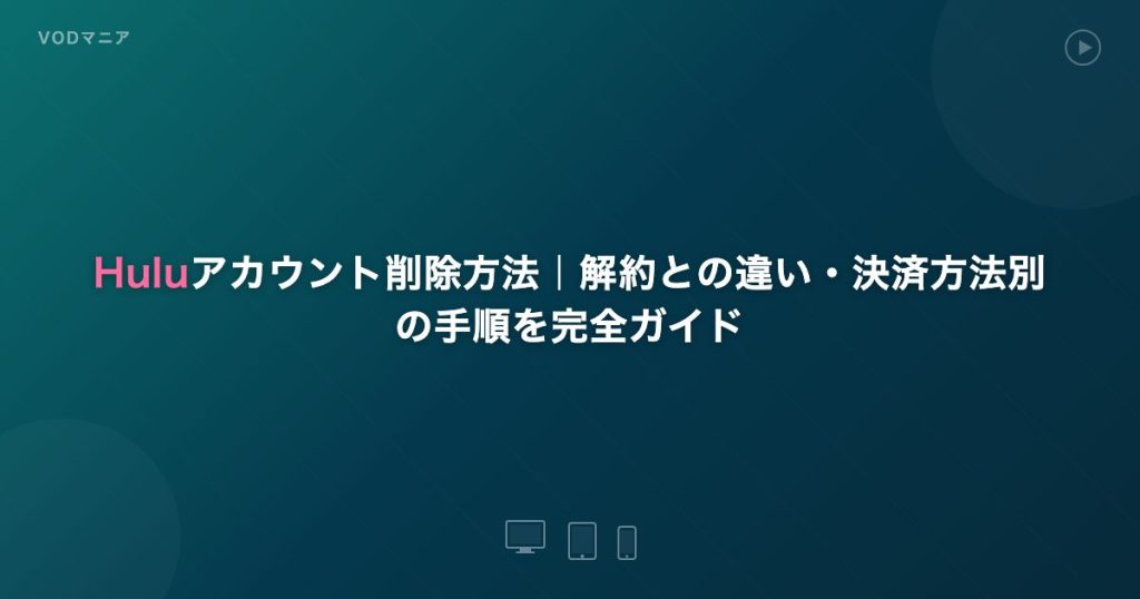 Huluの解約とアカウント削除(退会)の違い、Web・iTunes・Google Play・Amazon経由の決済方法別解約手順、注意点を完全ガイド。乗り換え先VOD比較も。 -